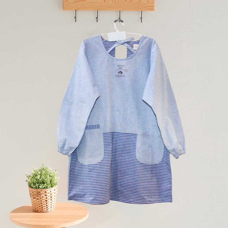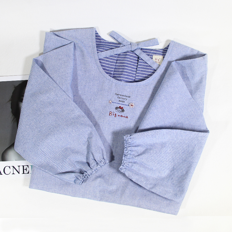 围裙薄款 夏天 超薄时尚家用长袖棉麻厨房围裙大人可爱带袖罩衣女